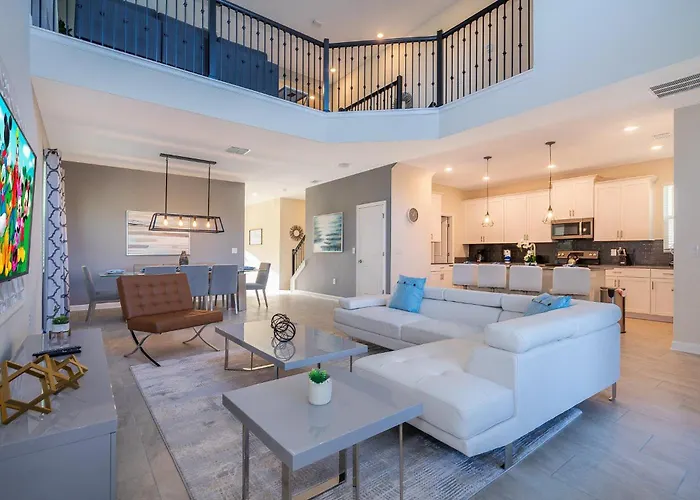 Orlando International airport can be reached within 35 minutes drive, and natural attractions like the zoological Disney's Animal Kingdom Theme Park are 2.5 km away. Guests can access Celebration Town Center 4.6 km away, while ESPN Wide World of Sports Complex is nearly a 25-minute walk away. This 5-bedroom villa is a 10-minute drive from a top family-friendly place such as Rock 'n' Roller Coaster Starring Aerosmith.